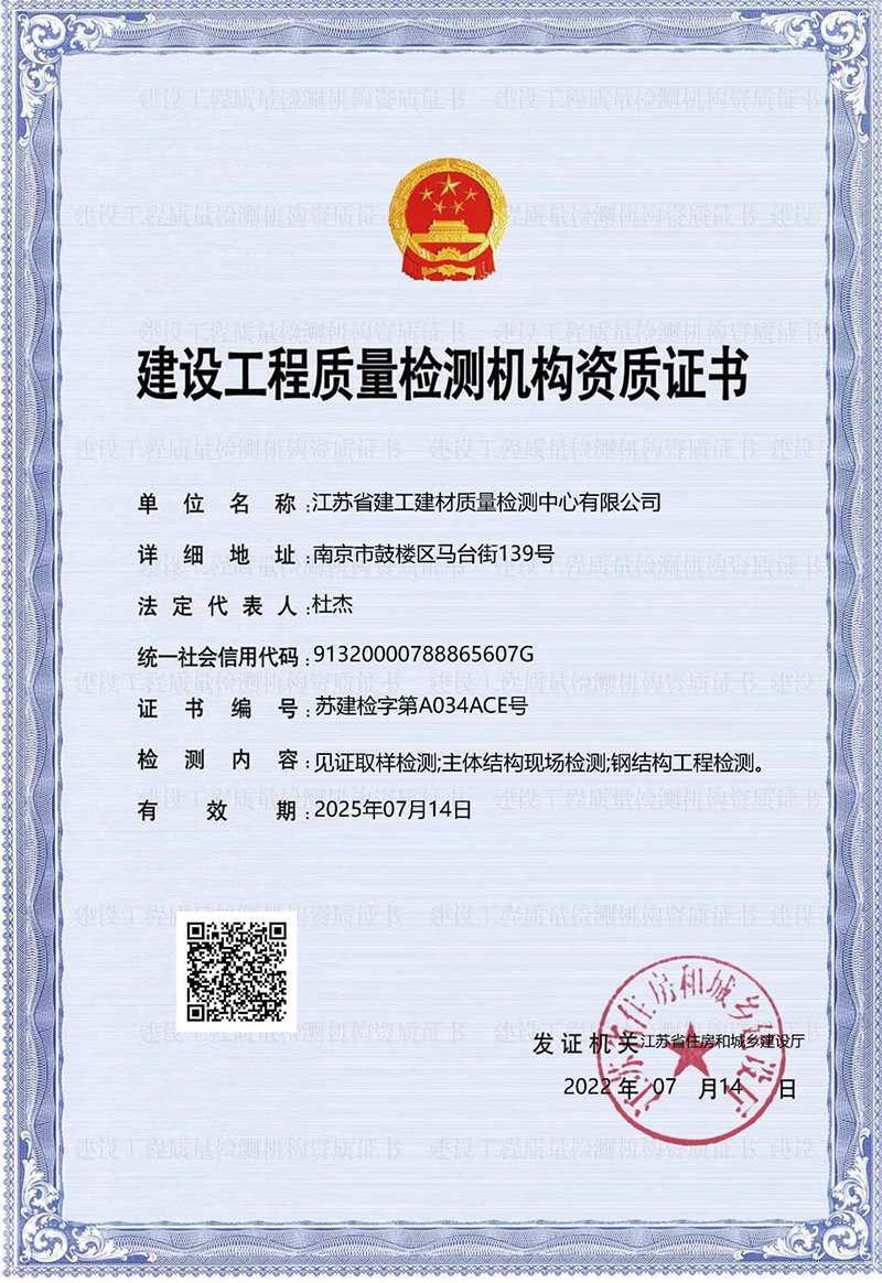 建設工程質(zhì)量檢測機構資質(zhì)證書