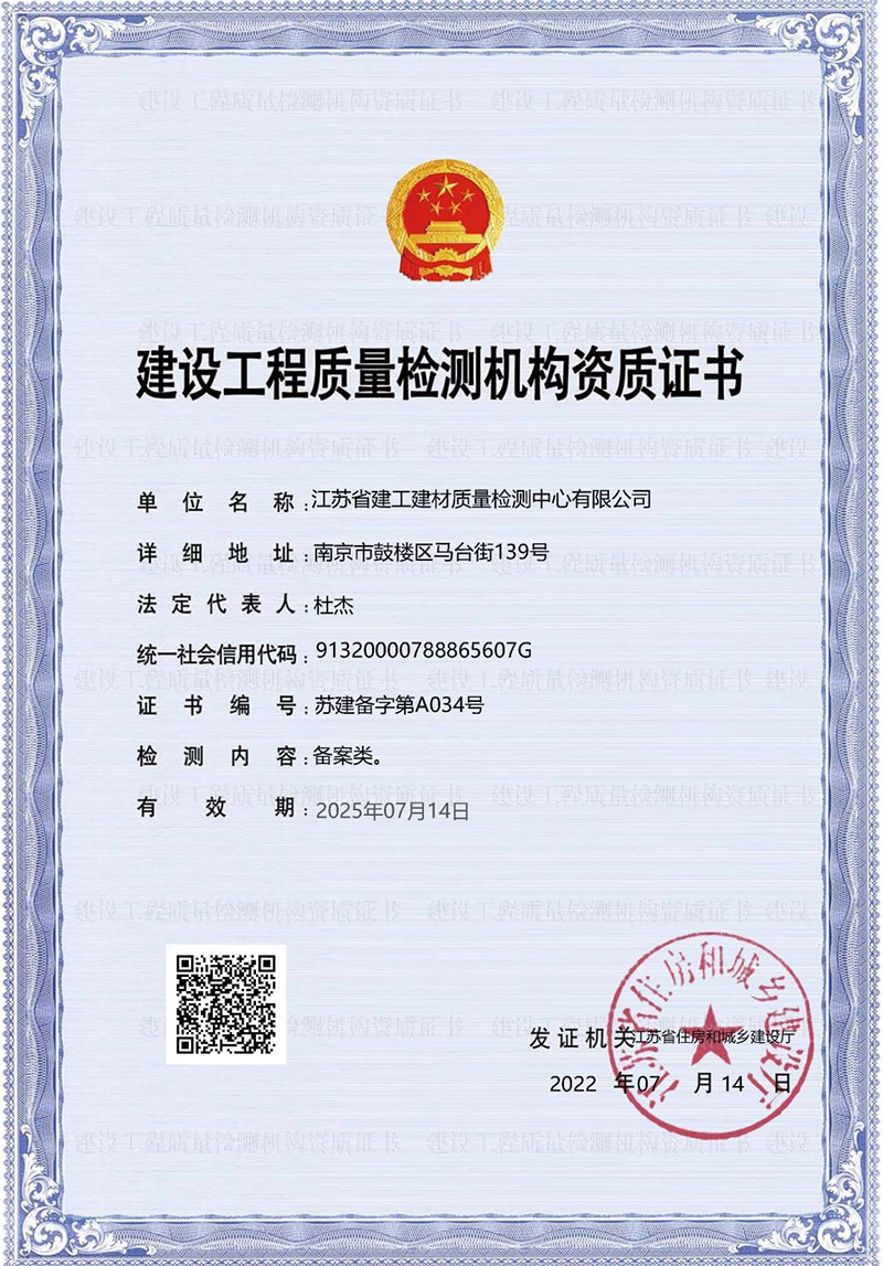 建設(shè)工程質(zhì)量檢測機構(gòu)資質(zhì)證書