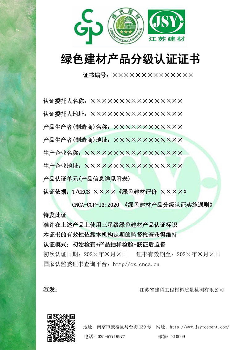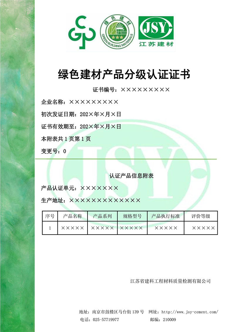 綠色產(chǎn)品認(rèn)證證書(shū)樣本